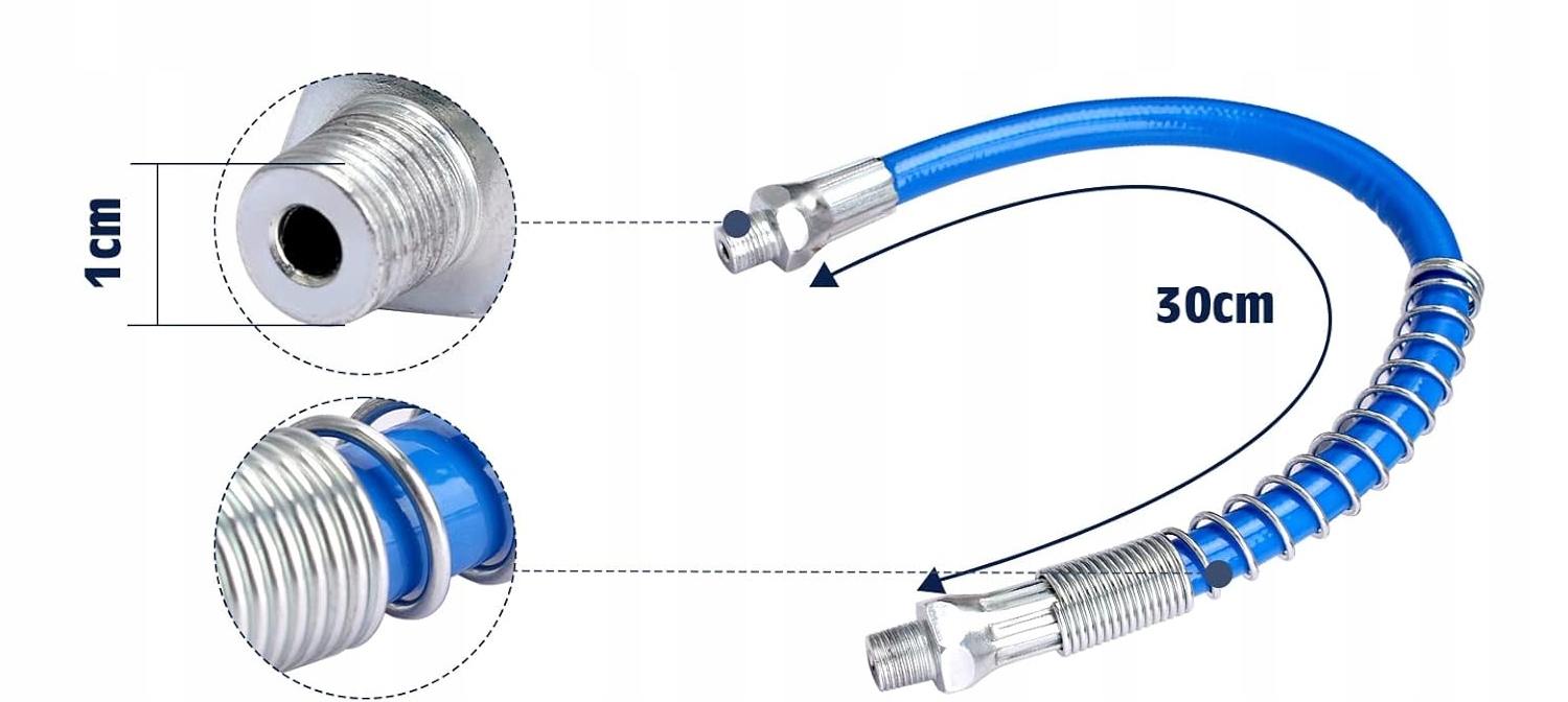 Elastyczny wąż do pistoletu smarowniczego, idealny do precyzyjnego smarowania w trudno dostępnych miejscach. Wykonany z wysokiej jakości stali nierdzewnej oraz odpornej żywicy, zapewnia niezawodne działanie nawet pod wysokim ciśnieniem. Kompatybilny z ręcznymi i pneumatycznymi pistoletami smarowniczymi.