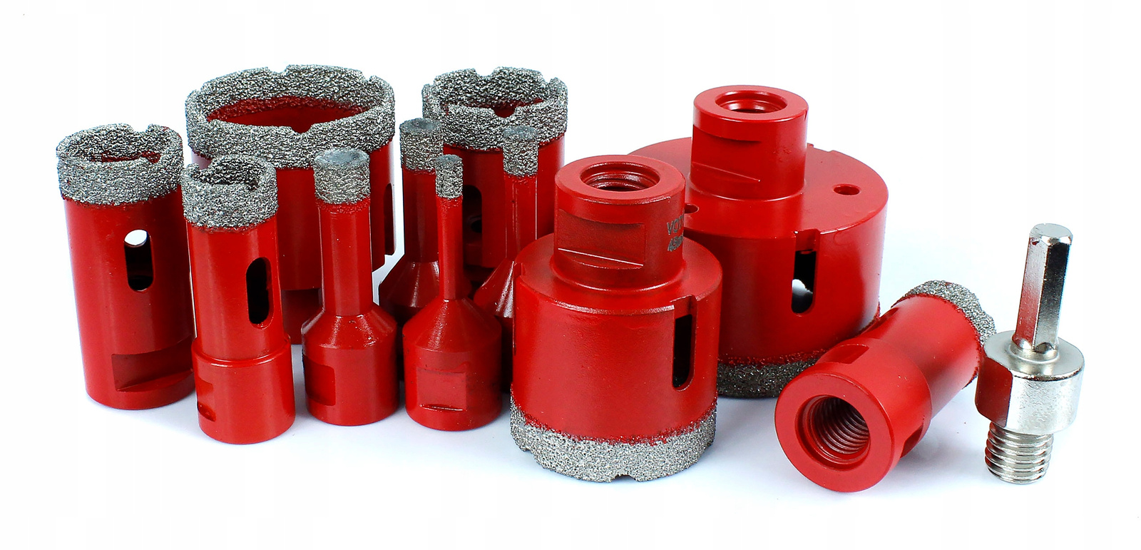 Samo chłodzące i wydajne wiertła diamentowe do pracy na sucho, przeznaczone do wiertarek i szlifierek kątowych umożliwiają czyste wiercenie we wszystkich rodzajach płytek bez stosowania chłodzenia wodą. Profesjonalne koronki diamentowe zostały osadzone w technologii próżniowego lutowania. Są cenione za szybkość wiercenia w bardzo twardych materiałach. Boczne otwory wentylacyjne otwornic przyspieszają wiercenie i usuwanie materiału.
