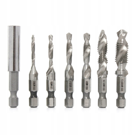 ZESTAW 7 SZT. DŁUGICH WIERTEŁ GWINTUJĄCYCH, METRYCZNYCH OD M3 DO M10