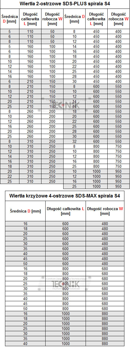 → Wiertła udarowe do betonu SDS-PLUS z dwoma ostrzami
