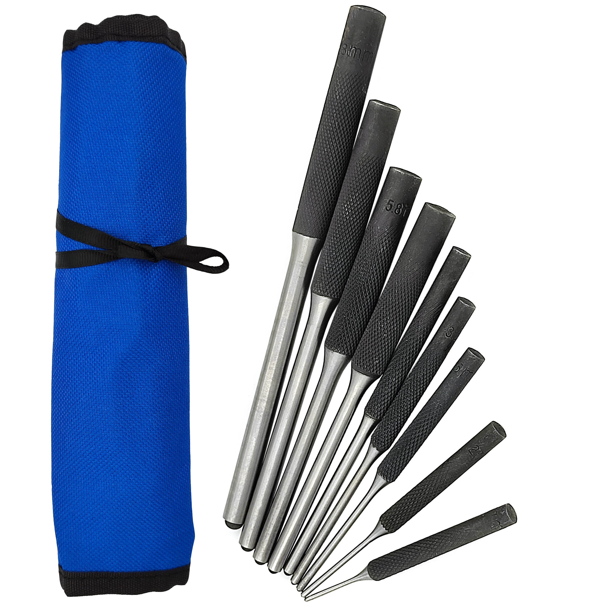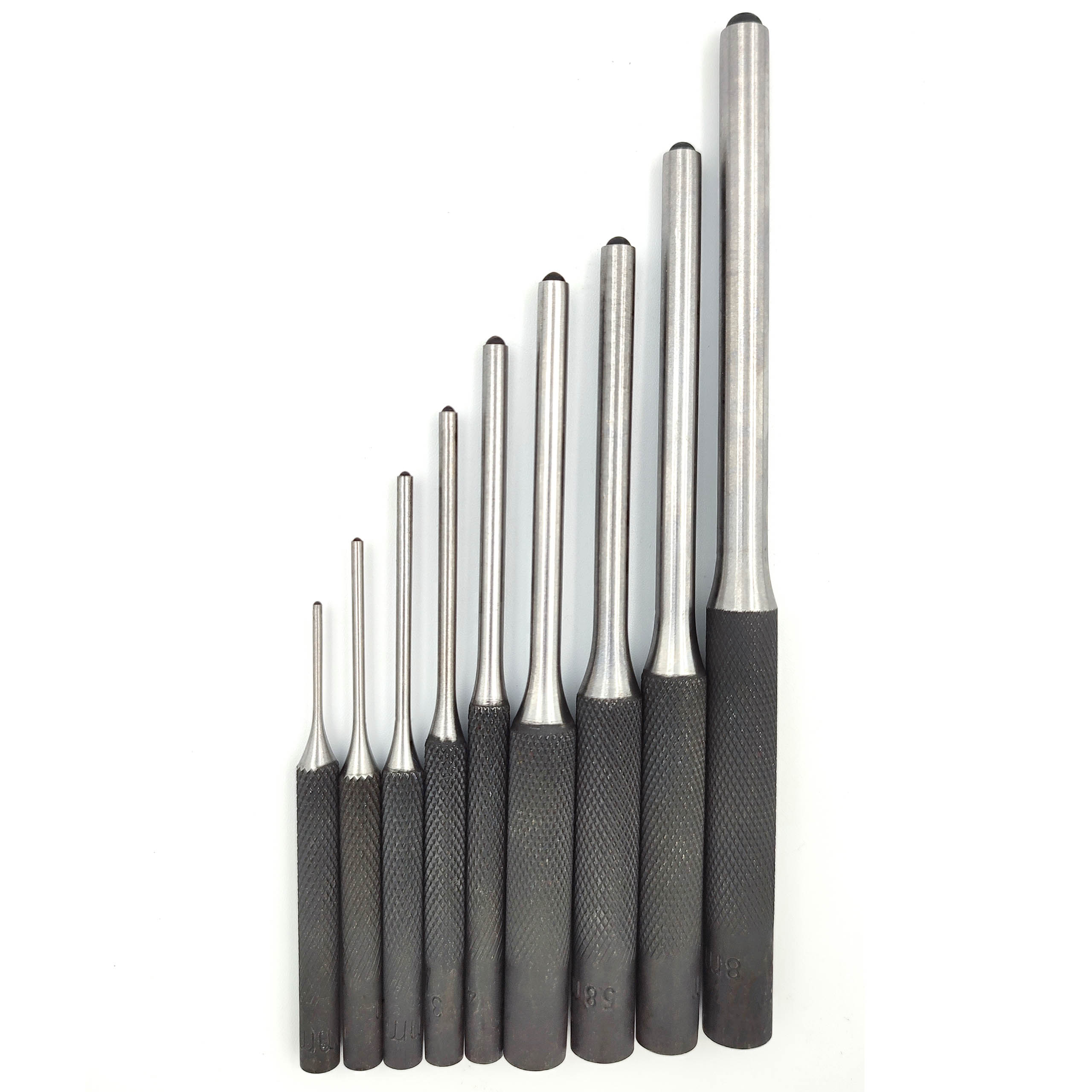 Każdy wybijak wykonano z wysokogatunkowej stali chromowo-wanadowej (CrV), która gwarantuje odporność na pęknięcia, odkształcenia i zużycie. Końcówki zostały hartowane indukcyjnie, dzięki czemu zachowują ostrość i precyzję nawet przy długotrwałym użytkowaniu.