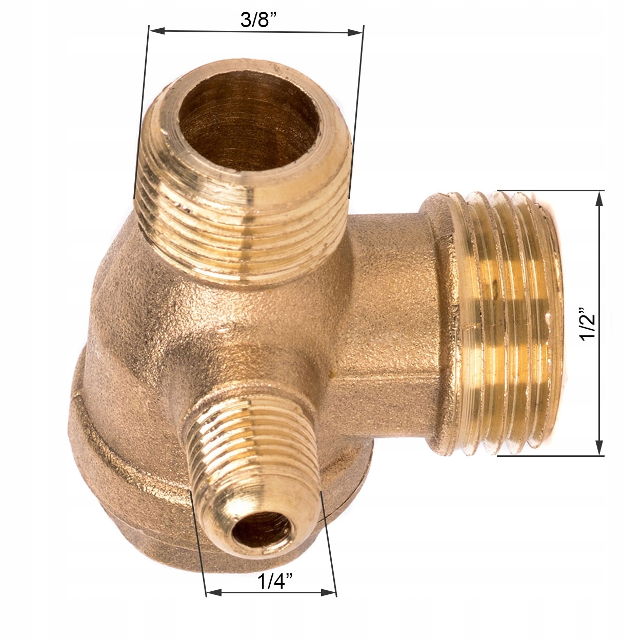 Profesjonalny zawór zwrotny z gwintami 1/2" x 3/8" znajdujący zastosowanie w kompresorach. Zabezpiecza przed cofaniem się z butli wcześniej wtłoczonego powietrza. Model ten wyposażony jest w wyjście odprężnika, które należy podłączyć pod przełącznik. Jeśli Twój kompresor nie jest wyposażony w odprężnik, należy zaślepić wyjście.
