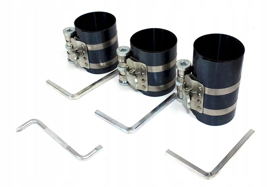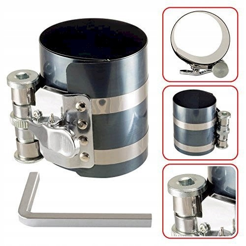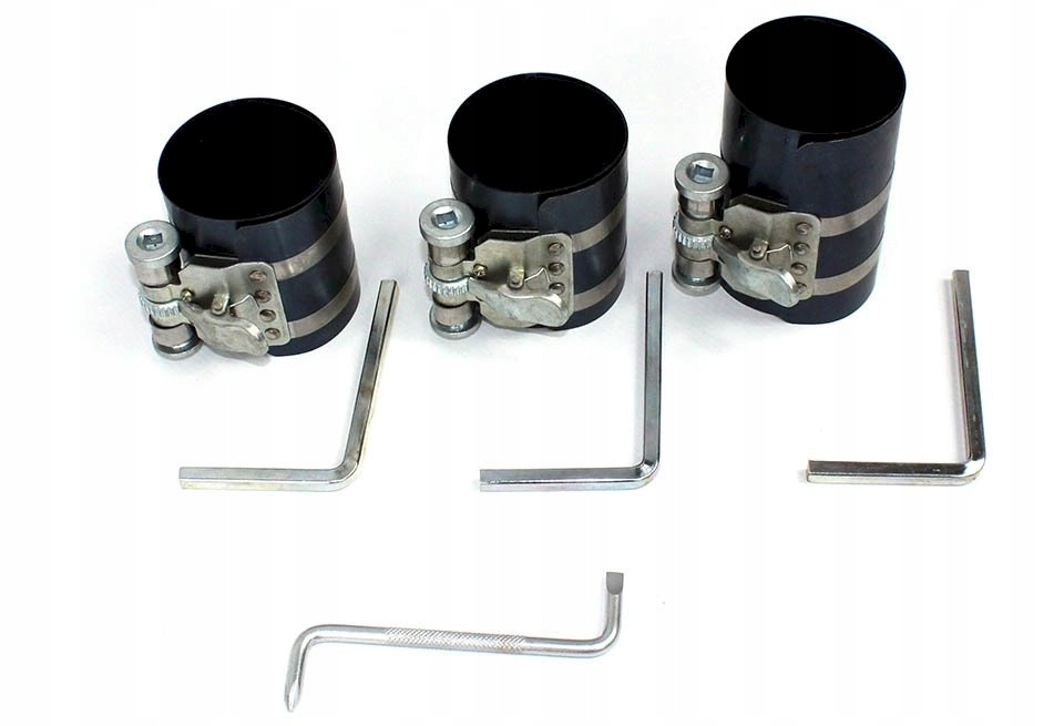 Uniwersalny zestaw narzędzi do pierścieni tlokowych. Szczypce do montażu i demontażu pierścieni tłokowych minimalizujące ryzyko uszkodzenia pierścieni, przyrząd do oczyszczania rowków tłoka oraz zaciskacze do pierścieni. Przyrząd do czyszczenia rowków tłoka wyposażony w trzy krążki z ostrzami. Dopasowanie ostrza do właściwej średnicy tłoka następuje poprzez przesunięcia krążka po płaskowniku. Zaciskacz do pierścieni umożliwia wpasowanie tłoka do korpusu silnika. Zestaw niezastąpiony w warsztatach samochodowych, motoryzacyjnych i serwisach naprawczych. Całość zestawu w praktycznej walizce. Zawartość zestawu: