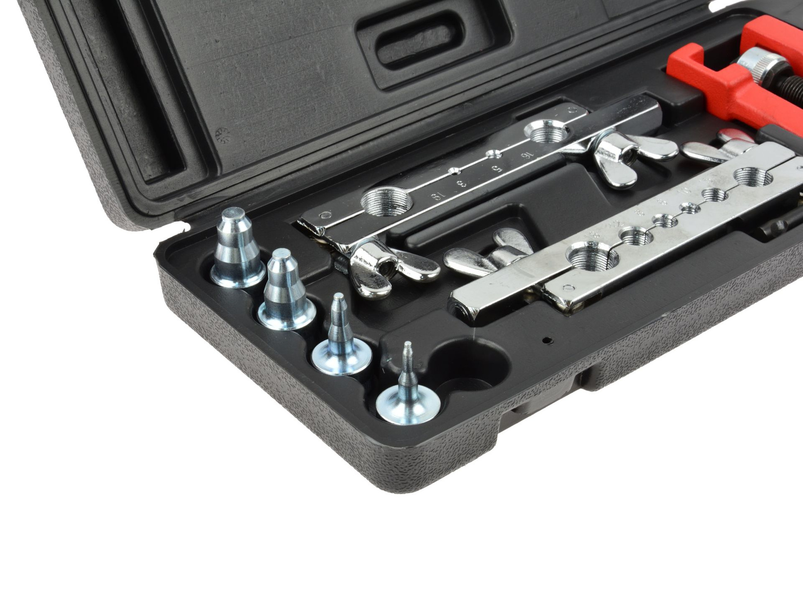 Zestaw służy do cięcia i zarabiania końcówek przewodów hamulcowych, hydraulicznych, miedzianych, miedziano-niklowych oraz cienkościennych przewodów stalowych.
