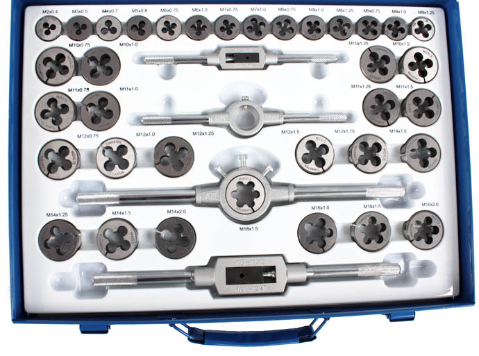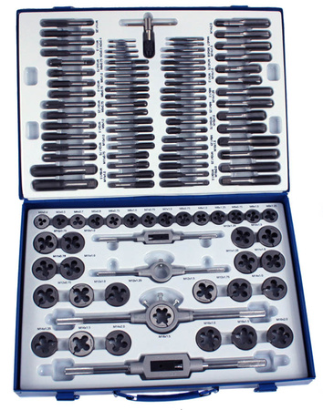 Profesjonalne gwintowniki i narzynki wykonane z doskonałego materiału. Zestaw zawiera 110 elementów. Zapakowany w wygodną walizkę, która pozawala utrzymać porządek, łatwo transportować zestaw i błyskawicznie odnaleźć potrzebny w danej chwili element.
