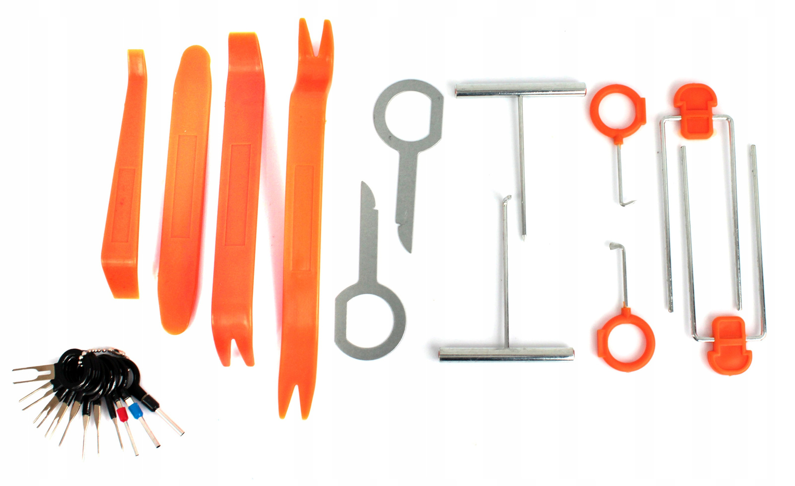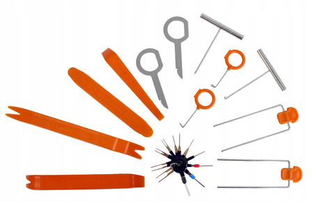 Uniwersalny zestaw wyjmaków do demontażu wszystkich rodzajów kostek elektrycznych i wtyczek.