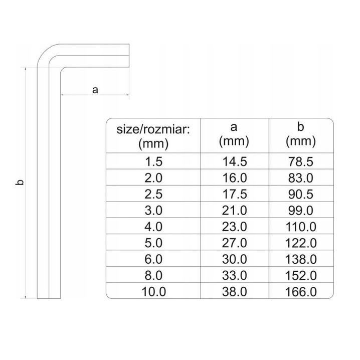 Komplet kluczy imbusowych HEX z kulką 1,5 - 10 mm
