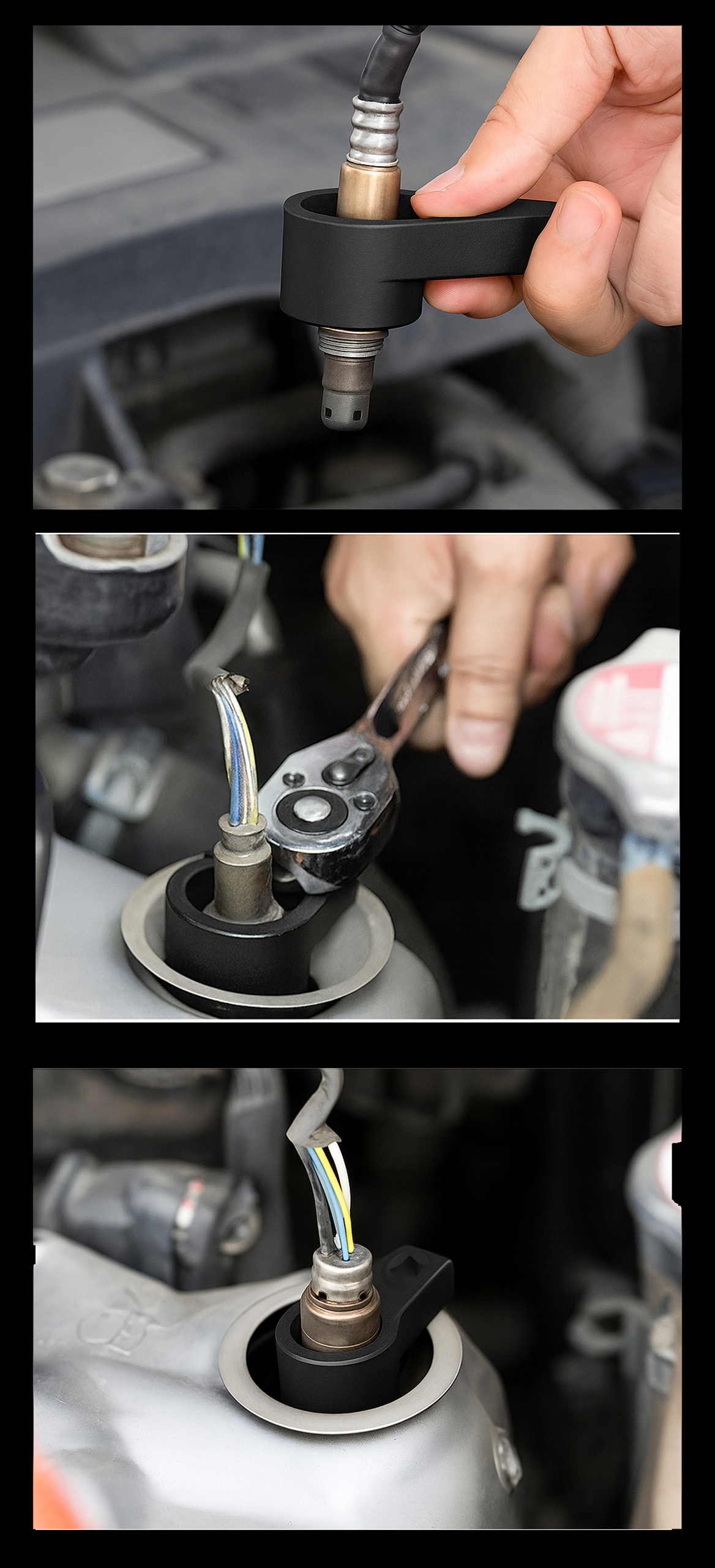 - Nasadki pozwalają wykonać wymianę sondy lambda bez konieczności odłączania przewodu
