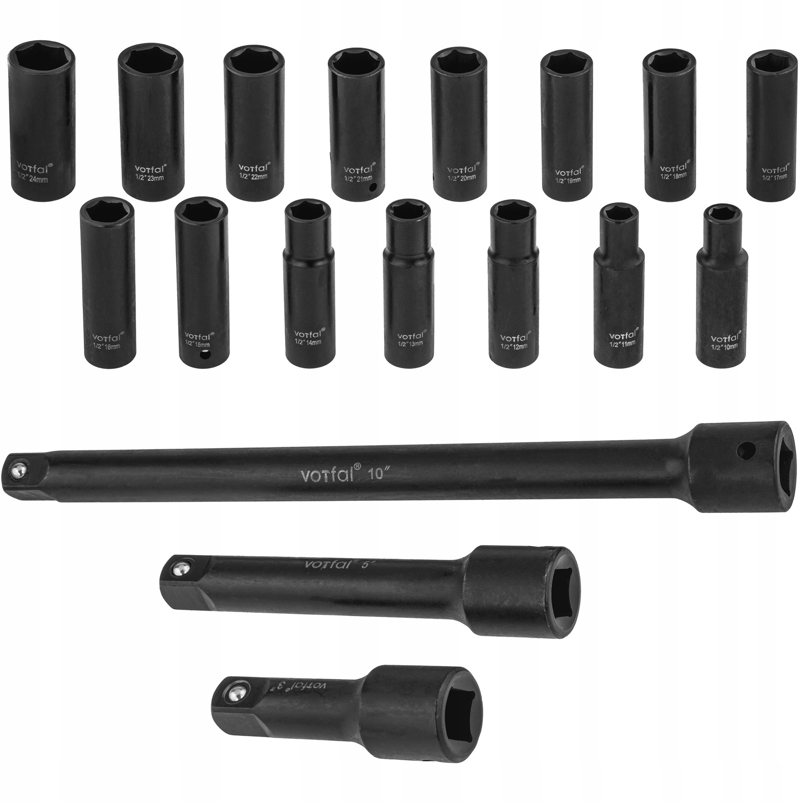 ZESTAW NASADEK UDAROWYCH 10-24 MM NASADKI UDAROWE 1/2 UDAR 18 EL + PRZEDŁUŻKI 75 / 125 / 250 MM