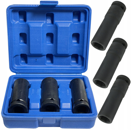 ZESTAW 3 NASADEK UDAROWYCH 1/2" DŁUGICH I W PUDEŁKU 17 MM / 19 MM / 21 MM