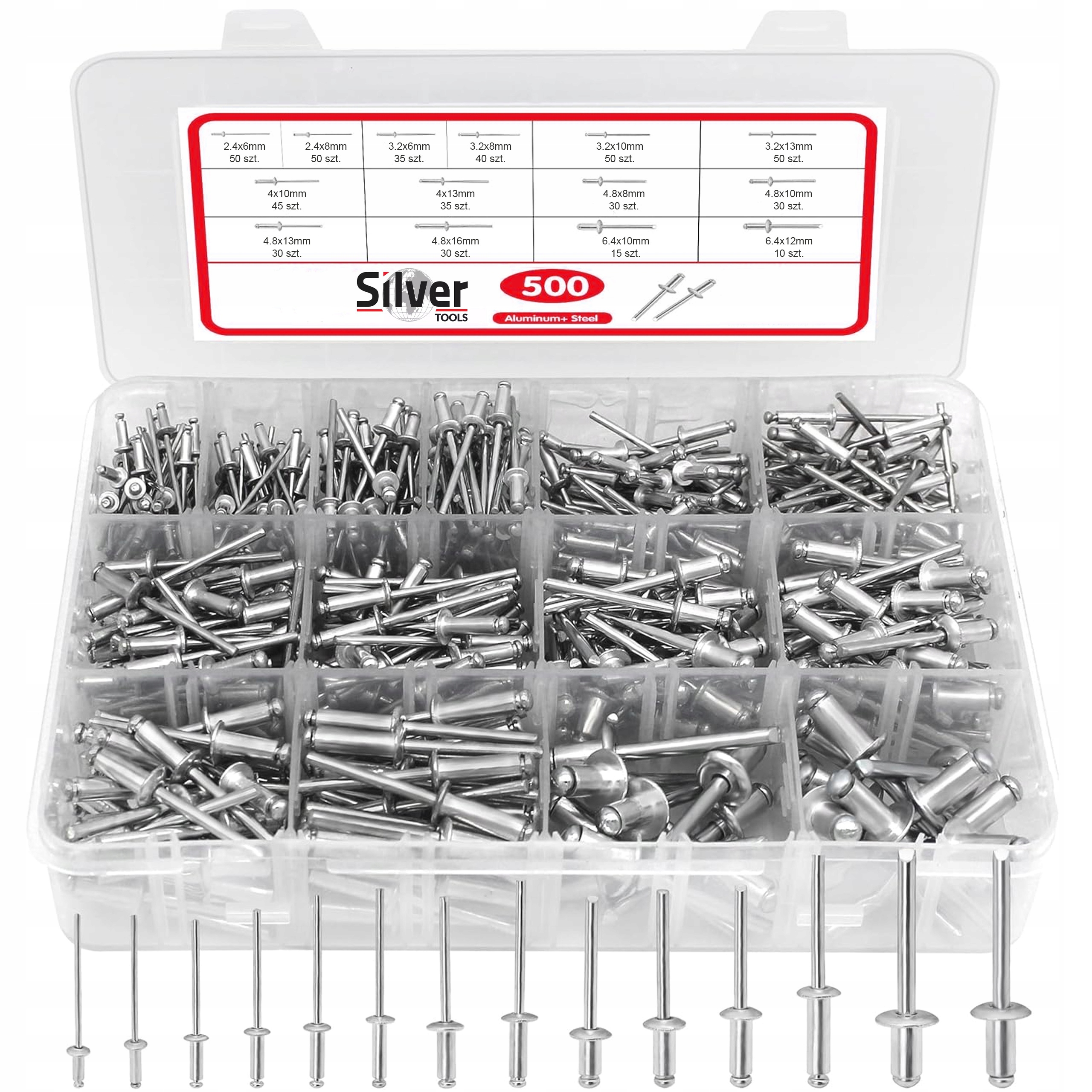 ZESTAW NITÓW ZRYWALNYCH DO NITOWNICY RĘCZNEJ 2.4–6.4 mm | 500 SZTUK