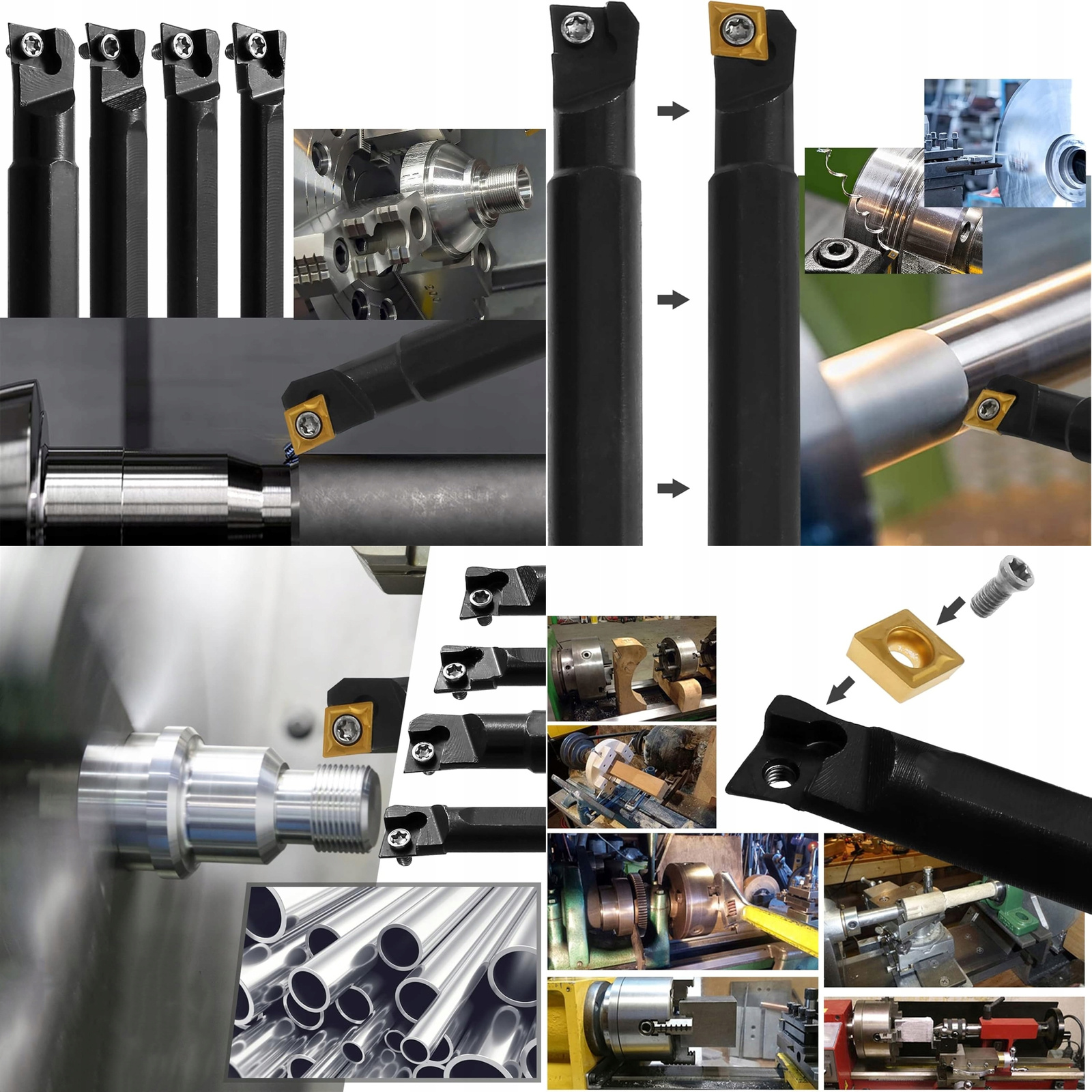 - Uniwersalność: Ostrza są kompatybilne z różnymi typami noży tokarskich z zestawu, co zwiększa elastyczność w obróbce różnych materiałów.