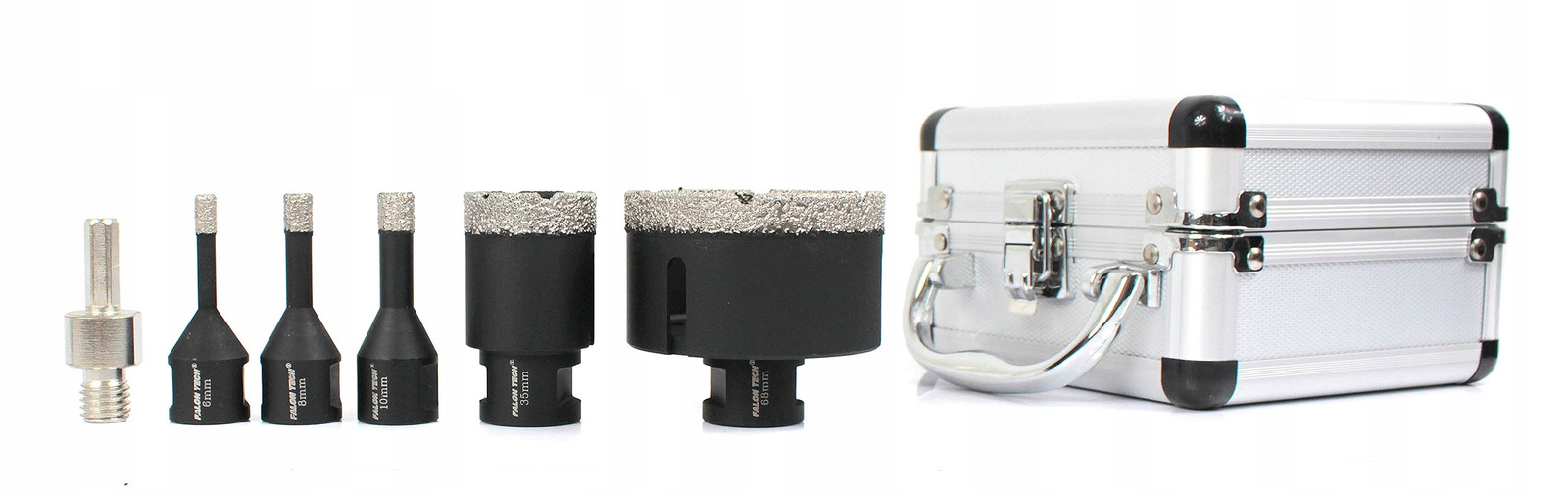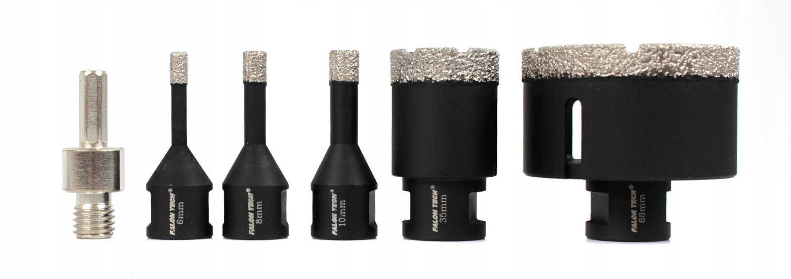 - Otwornice diamentowe do kamienia, gresu glazury 6, 8, 10, 35 oraz 68 mm