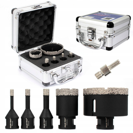 Zestaw 5 otwornic, koronek diamentowych do ceramiki, kamienia, gresu, glazury 6, 8, 10, 35 oraz 68 mm M14