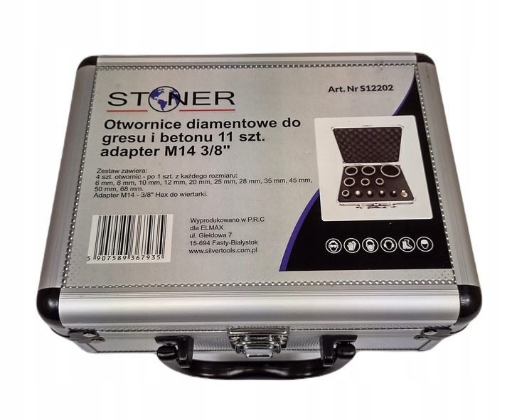- w zestawie: otwornica 6, 8, 10, 12, 20, 25, 28, 35, 45, 50 oraz 68 mm