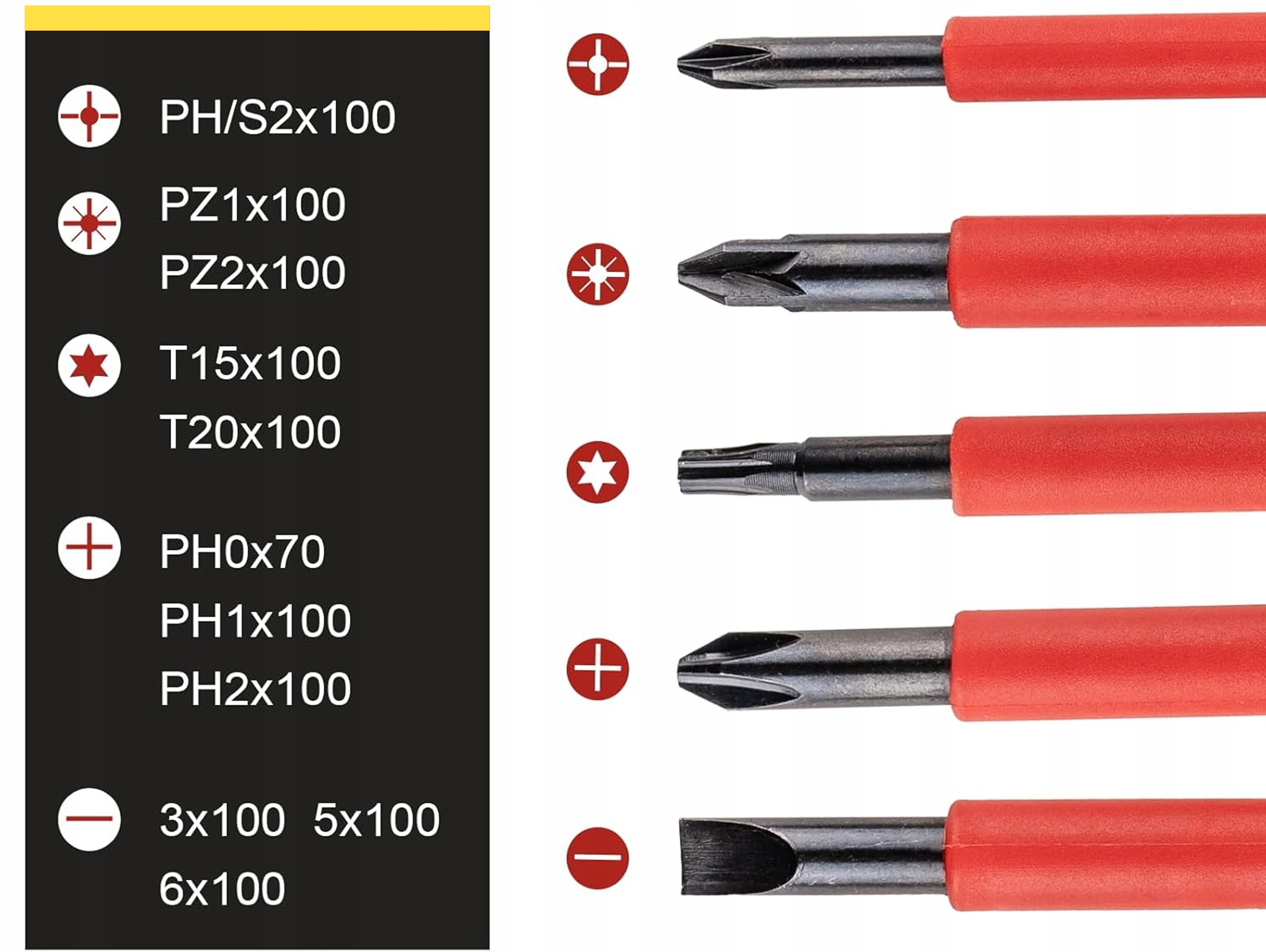 Ten zestaw łączy wszechstronność, profesjonalną jakość i pełne bezpieczeństwo pracy. Idealny do instalacji, rozdzielni, napraw sprzętów domowych czy samochodowych.