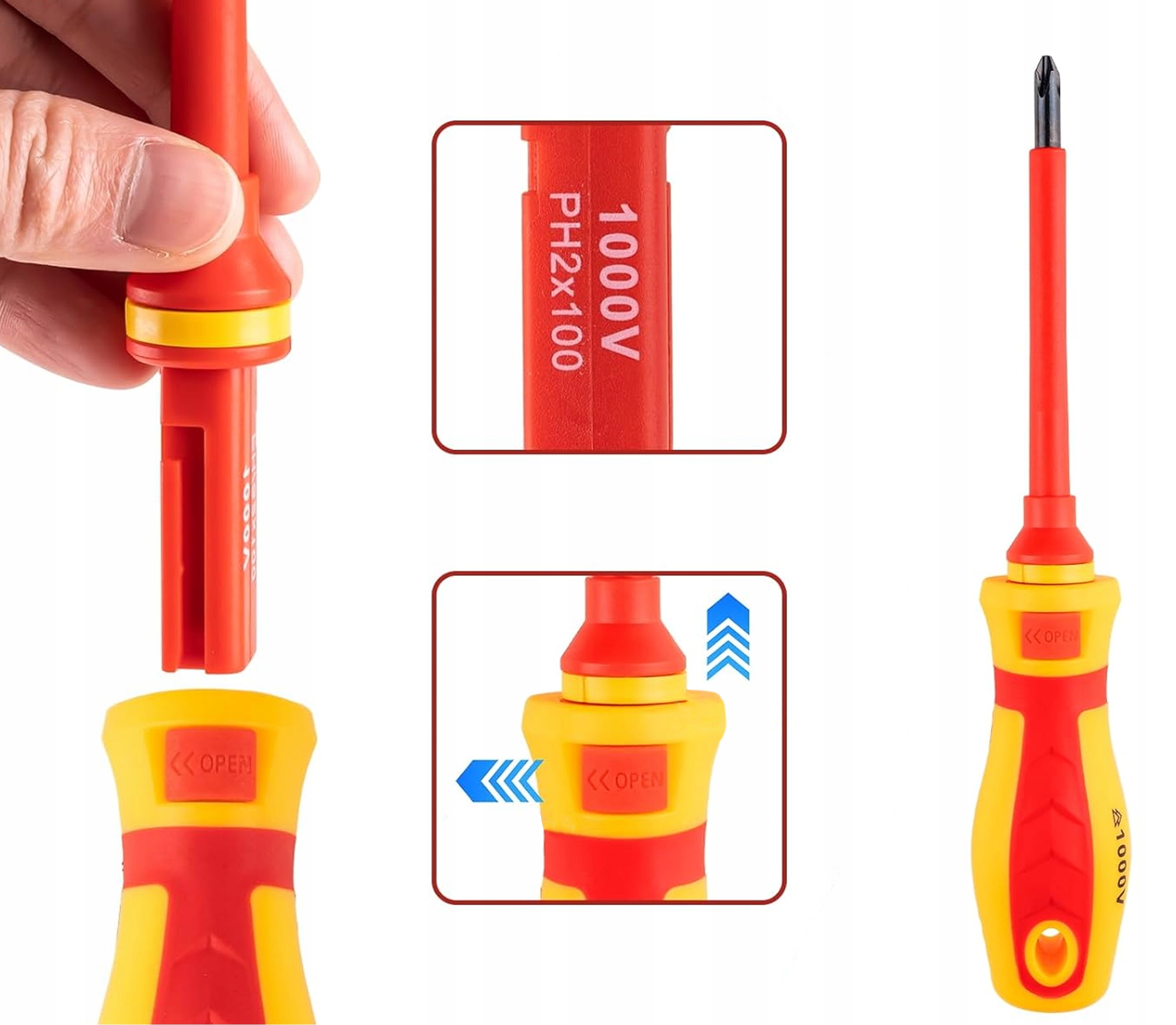 ✅ Izolacja do 1000V – zgodność z normami VDE i GS zapewnia bezpieczeństwo pracy przy urządzeniach elektrycznych.