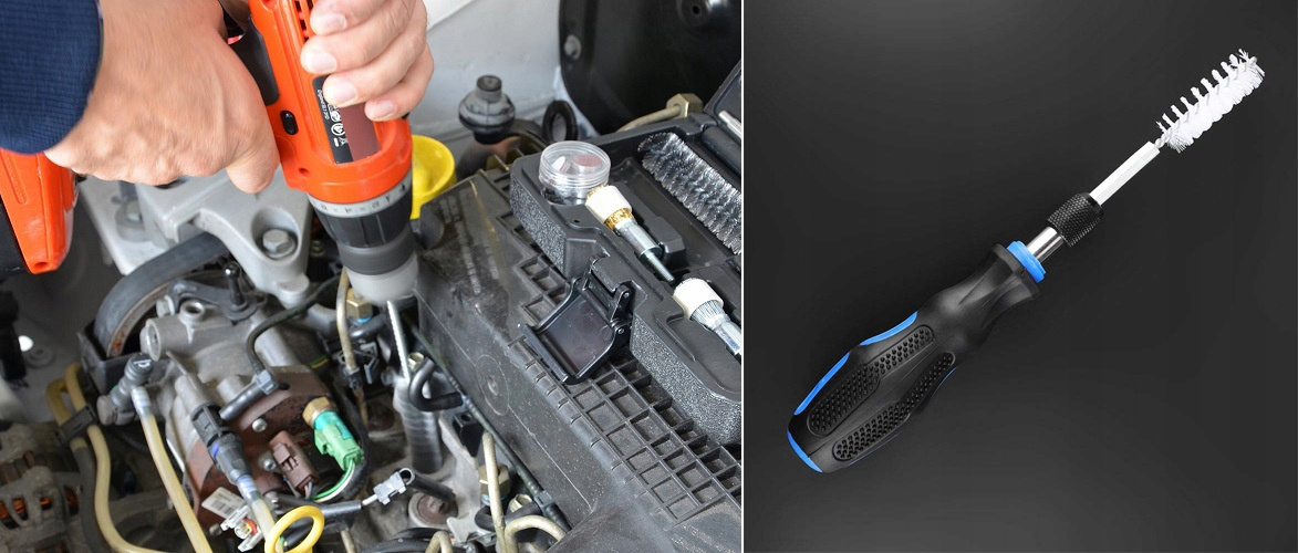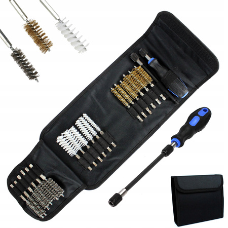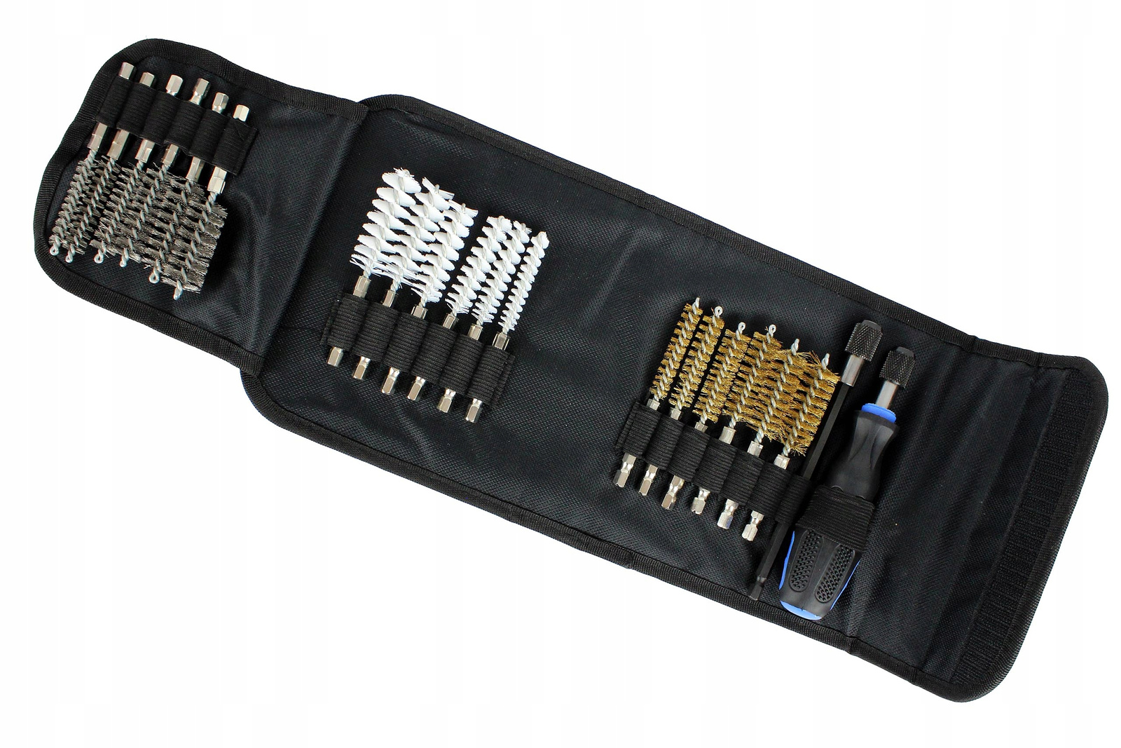 Zestaw szczotek przeznaczony do czyszczenia osadu węglowego m.in. z gniazd wtryskiwaczy. W zestawie rękojeść z uchwytem do szybkiego mocowania szczotek oraz przedłużka, szczotek można używać ręcznie lub zamontować do wiertarki.