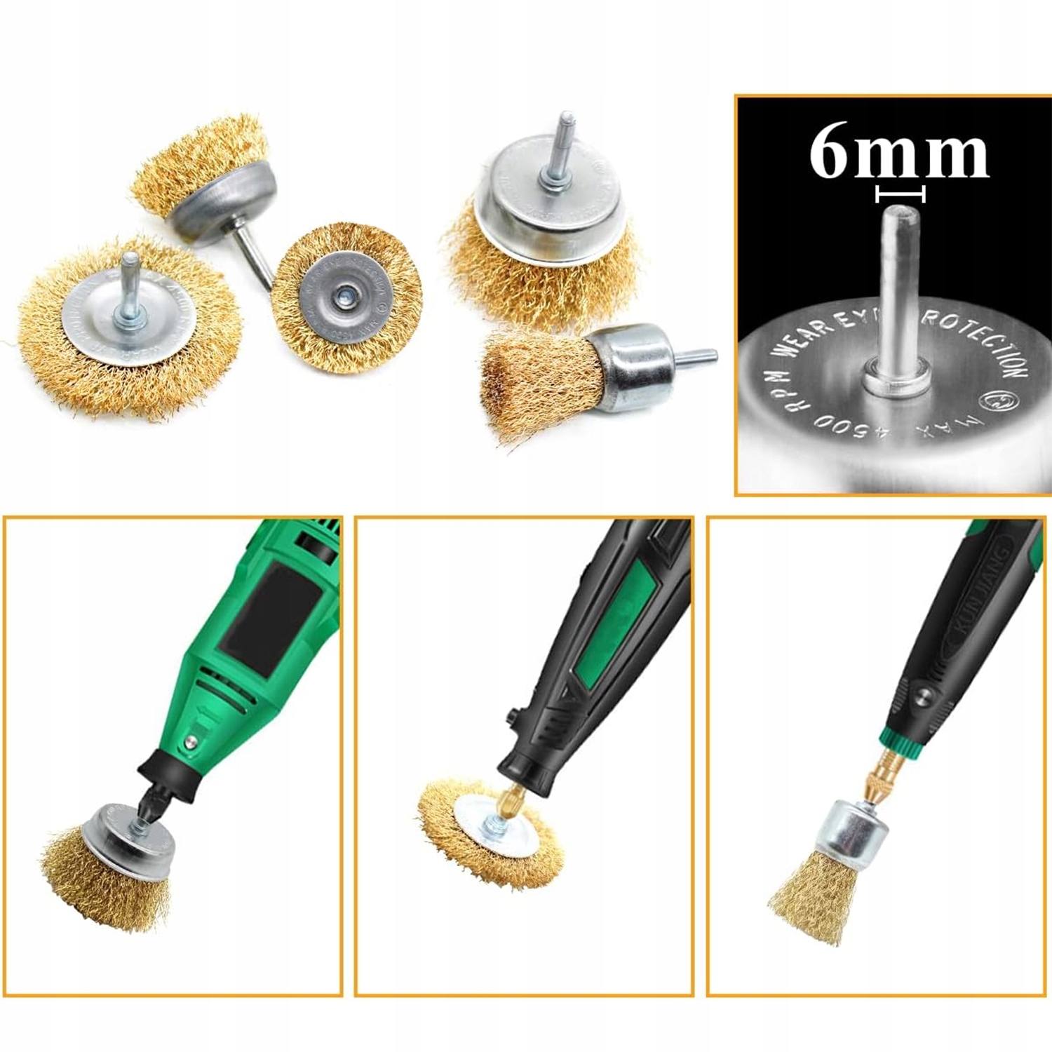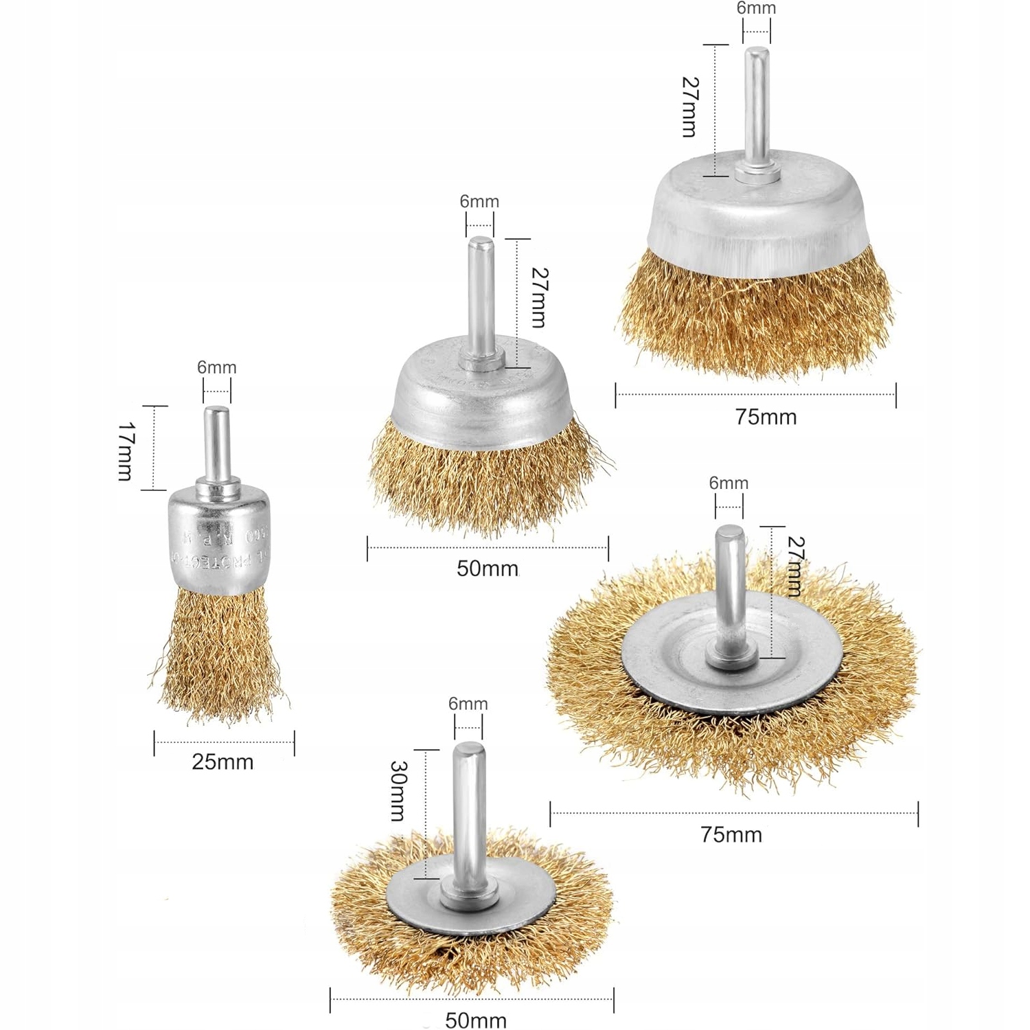 ZESTAW MOSIĄDZOWANYCH SZCZOTEK DRUCIANYCH DO WIERTARKI – 5 ELEMENTÓW