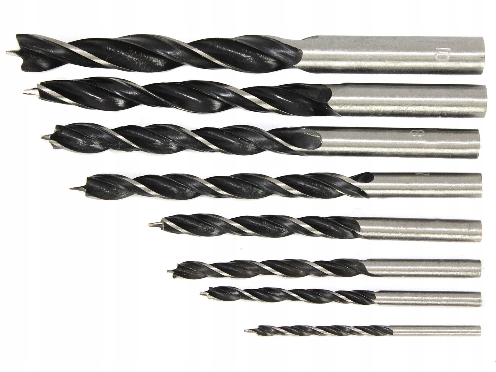 Komplet 8 wierteł spiralnych do drewna 3 - 10 mm.