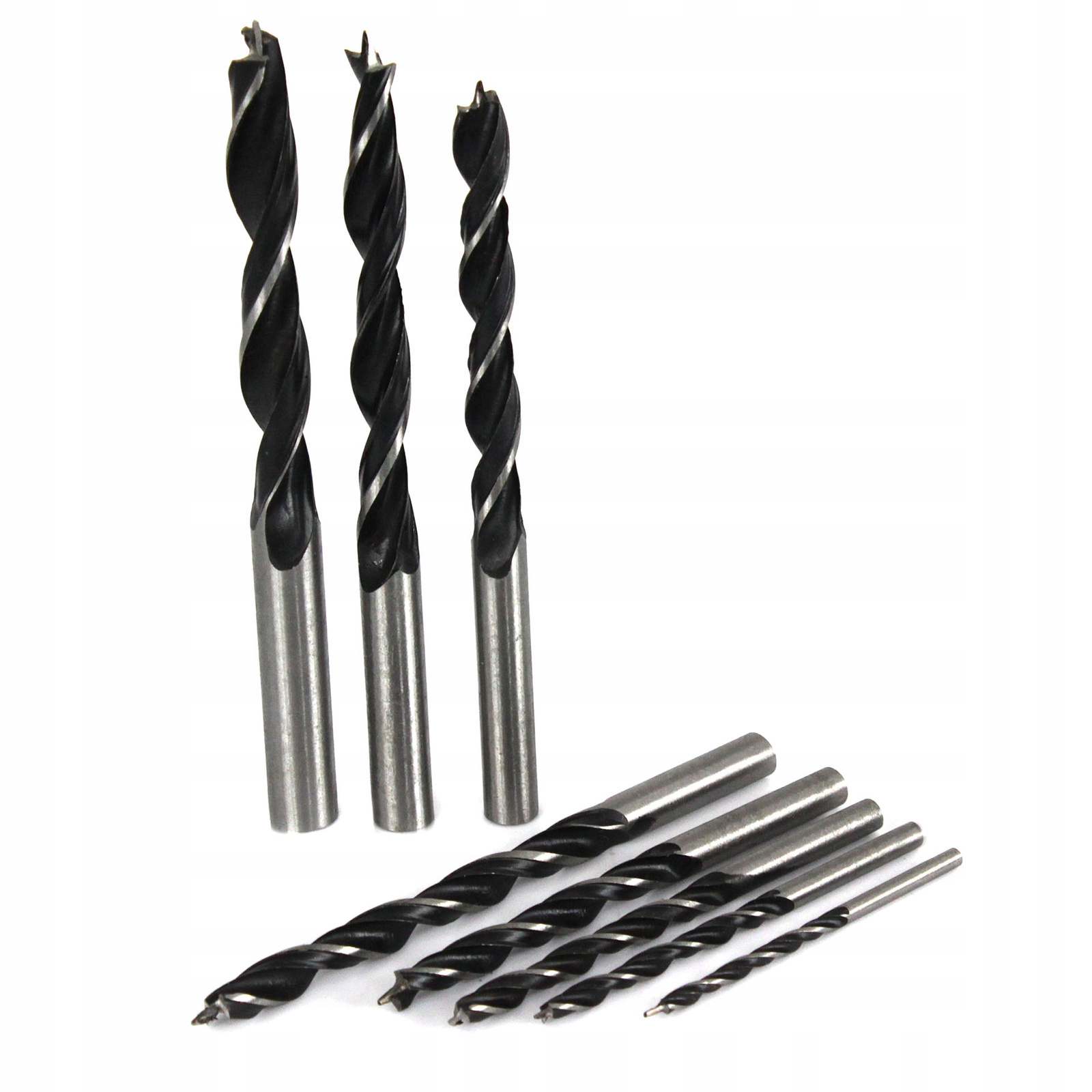W zestawie wiertła o średnicy 3, 4, 5, 6, 7, 8, 9, 10 mm.