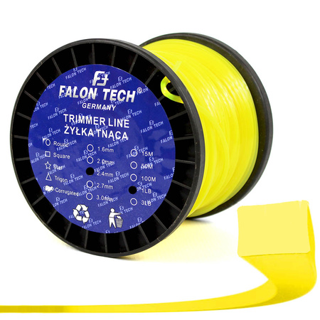 Żyłka do podkaszarek i kos Falon-Tech zapewnia wysoką wydajność koszenia dzięki podwyższonej odporności na strzępienie w każdych warunkach pogodowych, a także na sklejanie oraz topnienie.